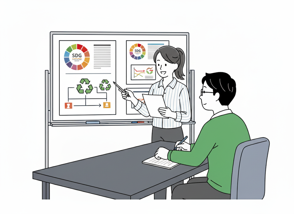 環境問題やSDGsの基礎、企業のエコ活の仕組みを学びます。専門的すぎない実践的な内容で、まずは理解することから始めます。